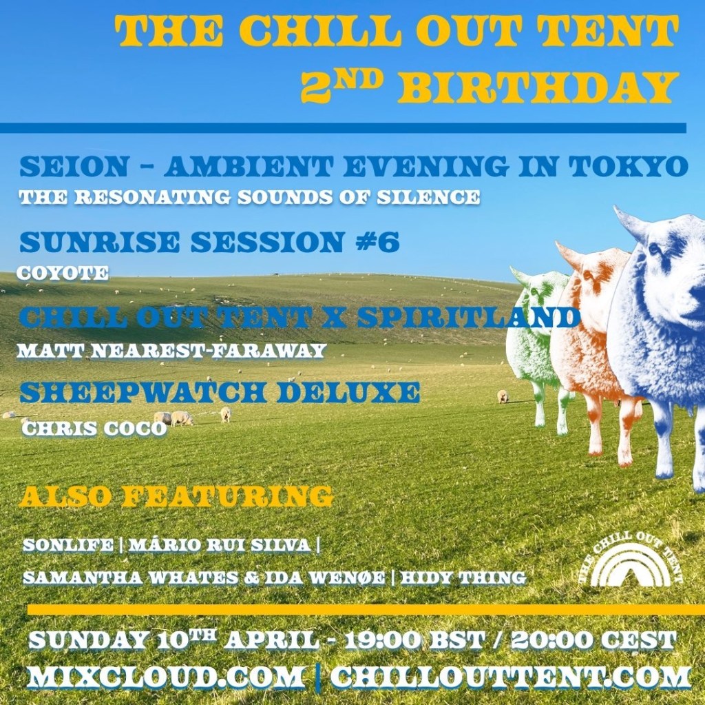 We’re back with a special edition of the Chill Out Tent, it’s our second birthday celebration livestream this Sunday 10/4/22 at 19:00 BST on Mixcloud live. This will be our 21st livestream since we started in April 2020 as a lockdown project in response to the global pandemic. Since then we’ve hosted over 150 films, DJ mixes, interviews, live gigs, festivals and listening sessions featuring an amazing community of artists, producers, DJ’s and creatives from all over the world.
