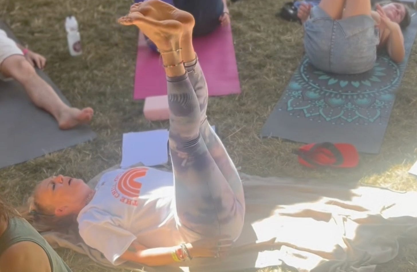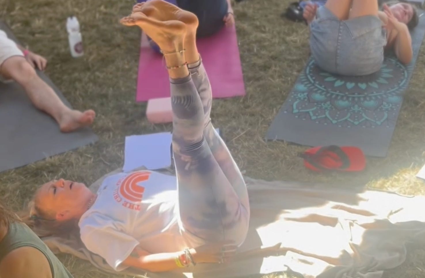Sorted for tees…? We have a handful of medium-sized Chill Out Tent t-shirts left – available for £10+P&P. Please contact us if you’d like one. Beautifully modelled by our yoga guru Louise, below.